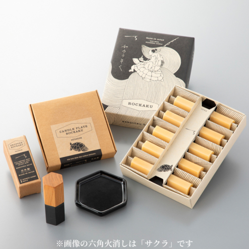 - 【L-951】大與 和ろうそく ROCKAKUセット ~米ぬかろうそくROCKAKU(10本入り)・ROCKAKU六角豆皿・ROCKAKU六角火消しカエデ~[高島屋選定品]