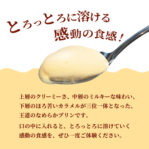 当店の看板商品。上層のクリーミーさ、中層のミルキーな味わい、下層のほろ苦いカラメルが三位一体となった、王道のなめらかプリンです。