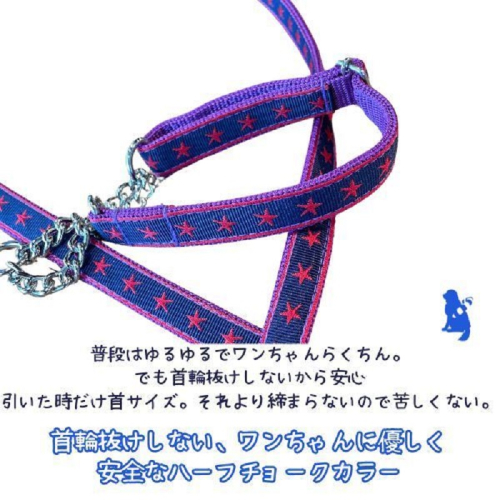 - ハーフチョークカラーとリードのセット(ネイビースター)小型犬用 Sサイズ