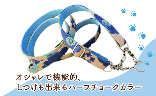 - 【中型犬用・Mサイズ】 ハーフチョークカラーとリードのセット(青の花) ペット用品 首輪 リード 中型犬 ビーグル 柴犬 ボーダーコリー フレンチブルドッグ ペット 犬 ワンちゃん セット 浜松市