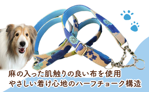 - ハーフチョークカラーとリードのセット(青の花)中型犬用 Mサイズ