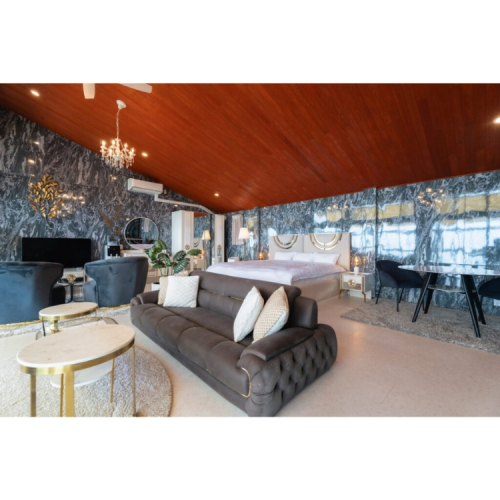 ゴージャスなトルコ家具に囲まれ、海を眺めながらの浴室や、プライベートテラスや焚き火台、ジャグジーまで設備された客室も。