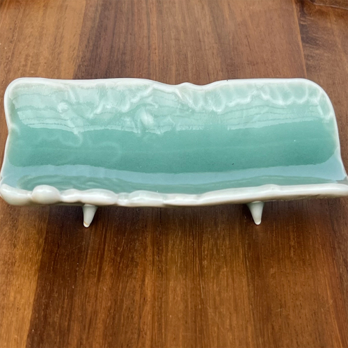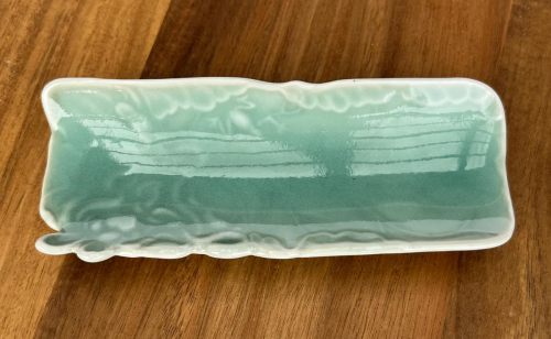 有田焼 青磁睡蓮彫 茶則 四足長皿 2枚 セット【有田焼 花伝作】食器 器 うつわ お茶 和皿 茶そく ブルー A18-272