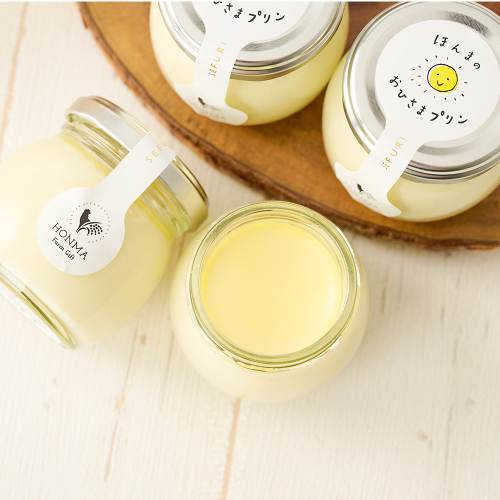 1回目は「おひさまプリン5個セット」です。本間農園自慢の有精卵「ほんまの卵」をたっぷり使用しており、自然養鶏法で育ったニワトリが生んだ卵を使っています。無添加でシンプルに仕上げられたこのプリンは、ほんまの卵、地元の高原牛乳、きび砂糖のみで作られており、卵の風味が豊かで優しい甘さが特徴です。