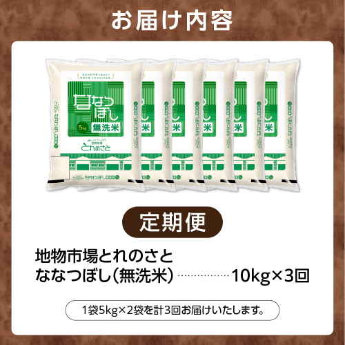 - 【定期便3回】地物市場とれのさと ななつぼし無洗米 10kg×3回