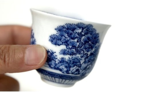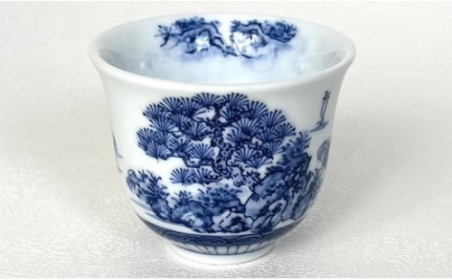 こちらは青色の染付で「松」や「岩絵」をぐるっと全体に描きました。