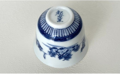 - 有田焼 青色山水絵反り ぐい呑み【起山窯】食器 うつわ 器 ぐい呑み 酒器 染付 岩絵 お酒 ブルー 18000円 A18-163