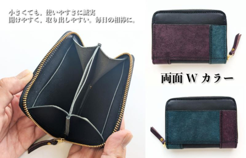 板谷革工房 本革小銭入れ「一針の誠実」(黒×紫×青緑) 099H4028