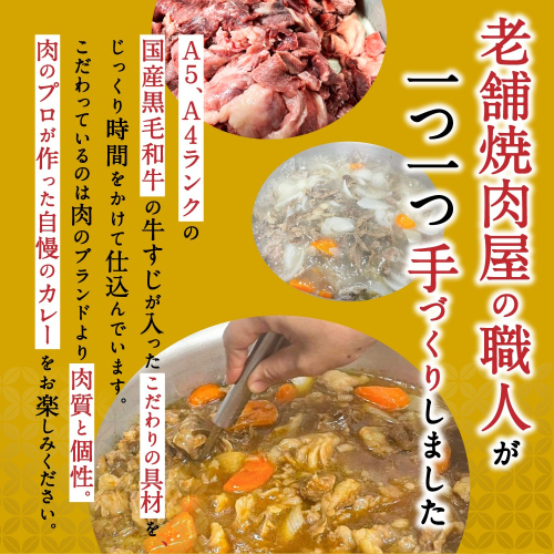 創業50年以上の伝統を誇る老舗焼肉屋がじっくり時間をかけて煮込んだカレーは厳選した牛スジ(A4.A5ランク等含む)を使用、店内で丁寧に心をこめて手作りしております。
