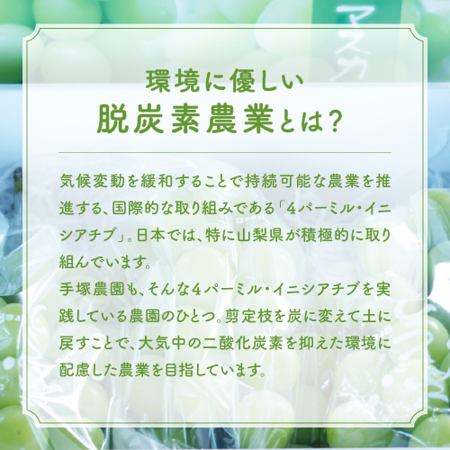 安心してお召し上がりいただける減農薬、地球温暖化対策「4パーミル・イニシアチブ」農作物としてブランド化を進めています。