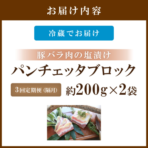 【定期便 隔月×3回】パンチェッタブロック(豚バラ肉の塩漬け) 約200g×2袋 ふるさと納税 豚肉 塩漬け ふるさと納税 ベーコン ふるさと納税 パンチェッタ 豚バラ 塩漬け スペイン料理