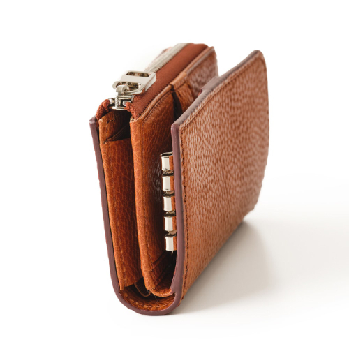 やわらかさとコシが程良い塩梅のバケッタレザーに、タンナーオリジナルのシュリンクエンボスを施しています。