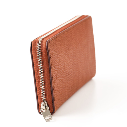 やわらかさとコシが程良い塩梅のバケッタレザーに、タンナーオリジナルのシュリンクエンボスを施しています。