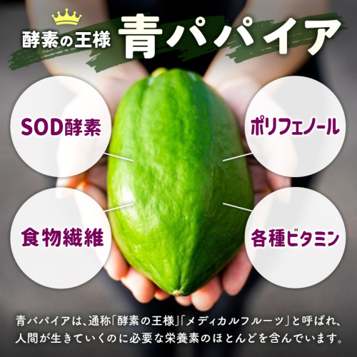 青パパイアには、フルーツパパイアの10倍もの酵素が含まれており「メディカルフルーツ」とも呼ばれています。