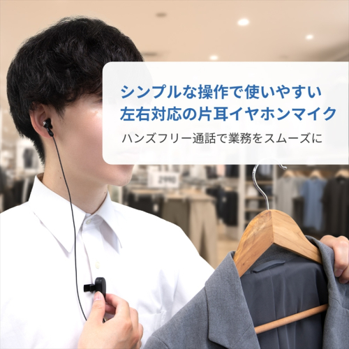左右どちらの耳でも装着可能で周囲の音を聞きながら通話できます。現場などで作業をしながらの通話ができ、インカムに最適です。