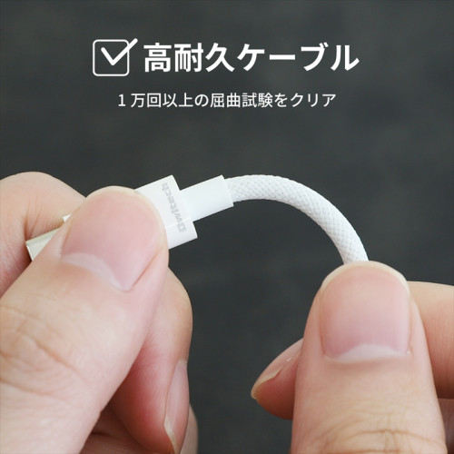 ナイロン素材でありながら絡みにくいブレイデッド(編み込み)ケーブルです。折り曲げ試験1万回の耐久性をもち、普段使いに最適な製品です。
