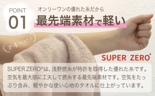 特許技術「SUPER ZERO(R)」糸を使用した、軽やかで柔らかな高品質タオル。