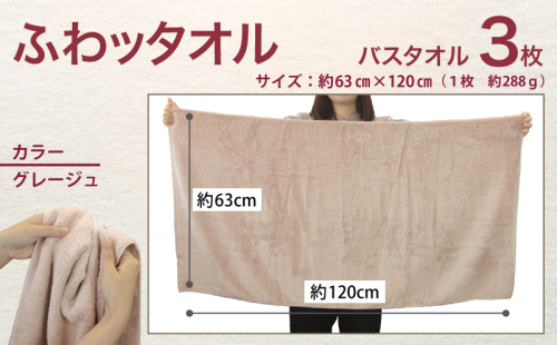 - ふわッタオル バスタオル 3枚セット(グレージュ)【スーパーゼロ SUPER ZERO 泉州こだわりタオル 泉州タオル 国産 吸水 普段使い シンプル 日用品 家族 ファミリー】 099H4043