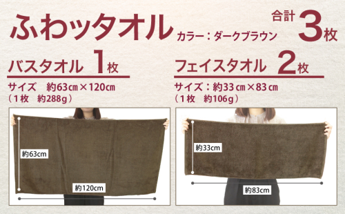 - ふわッタオル バスタオル 1枚&フェイスタオル 2枚セット(ダークブラウン)【スーパーゼロ SUPER ZERO 泉州こだわりタオル】 015B568