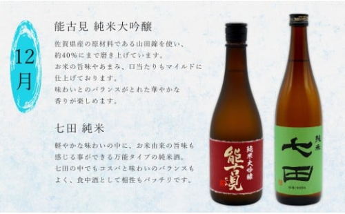 《年4回 さがん酒 定期便》金賞受賞 七田 宗政 能古見 万齢 720ml×2本×4回 定期便 【佐嘉蔵屋】 飲み比べ 日本酒 七田 宗政 能古見 万齢 純米 特別純米 特別吟醸 辛口 超辛口 720ml 2本 S80-2