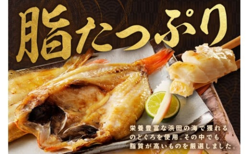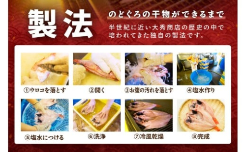 山陰沖で水揚げされたのどぐろを大秀商店独自の製法で1枚づつ丁寧にほしあげました。一枚づつ個包装にしておりますので、安心して保管できます。また贈り物にも最適です。ぜひ一度ご賞味ください。