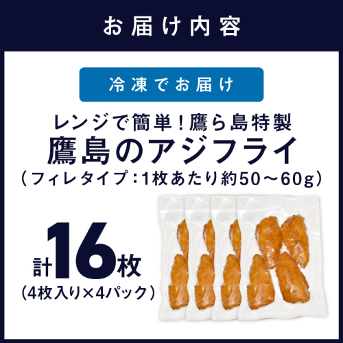 レンジで簡単!鷹ら島特製 松浦 鷹島のアジフライ(フィレタイプ)16枚(4枚×4p)( 松浦市 アジフライ アジ 鯵 あじ 時短料理 送料無料 )【B4-137】