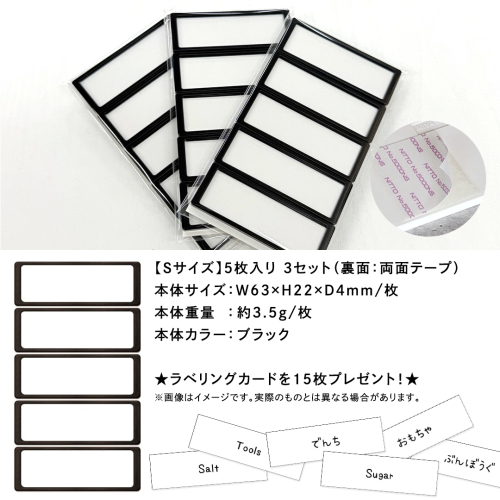 - 【 ラベルプレート 】 Sサイズ 5枚入り3セット <カラー:ブラック> (両面テープタイプ) 整理収納 整理整頓 定位置管理 ラベリング 断捨離 スッキリ お片付け 見出し テプラ かたづけ インデックス ネームプレート カードケース インテリア [CS16-NT]