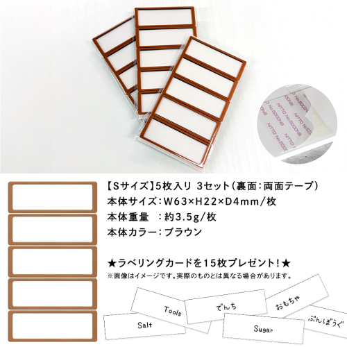 【 ラベルプレート 】 Sサイズ 5枚入り3セット <カラー:ブラウン> (両面テープタイプ) 整理収納 整理整頓 定位置管理 ラベリング 断捨離 スッキリ お片付け 見出し テプラ かたづけ インデックス ネームプレート カードケース インテリア [CS17-NT] 2345339 - 茨城県つくばみらい市