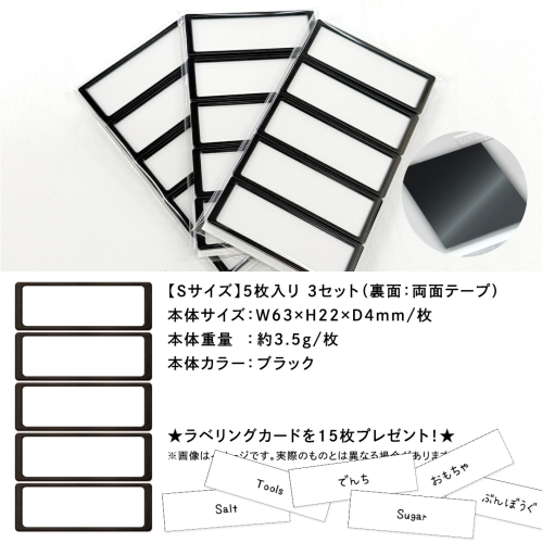 - 【 ラベルプレート 】 Sサイズ 5枚入り3セット <カラー:ブラック> (マグネットタイプ) 整理収納 整理整頓 定位置管理 ラベリング 断捨離 スッキリ お片付け 見出し テプラ かたづけ インデックス ネームプレート カードケース インテリア [CS19-NT]