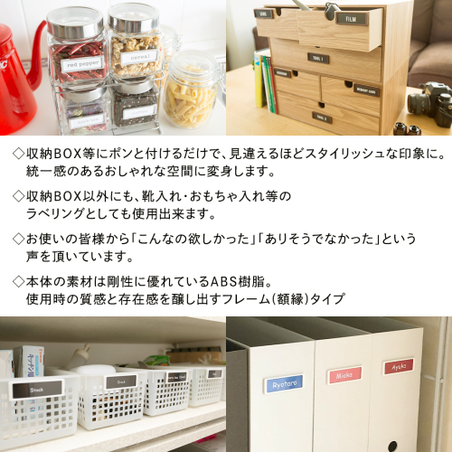 ◇収納BOX等にポンと付けるだけで、見違えるほどスタイリッシュな印象に。統一感のあるおしゃれな空間に変身します。