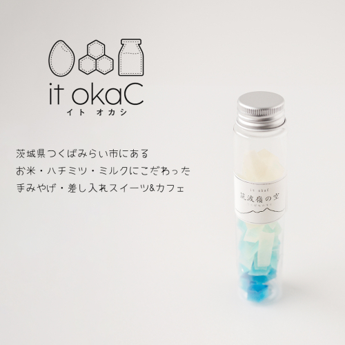 つくばみらい市から望む、美しい筑波山とその嶺にかかる空の色をイメージした琥珀糖です。