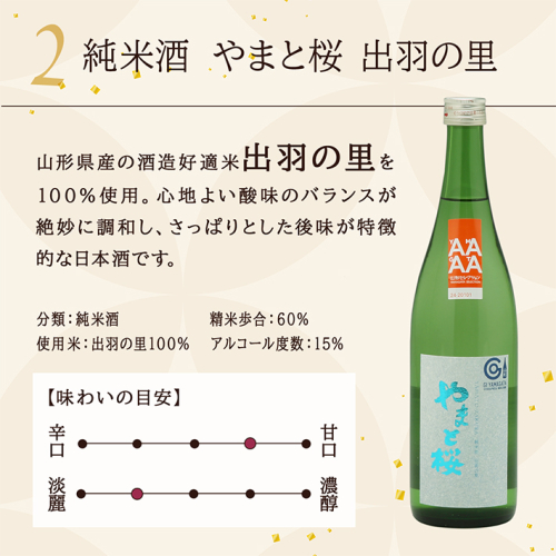やまと桜 純米大吟醸 出羽燦々・純米出羽の里 720ml×2本セット 飲み比べ 日本酒 地酒 老舗酒蔵 山形 庄内町 2347405 - 山形県庄内町