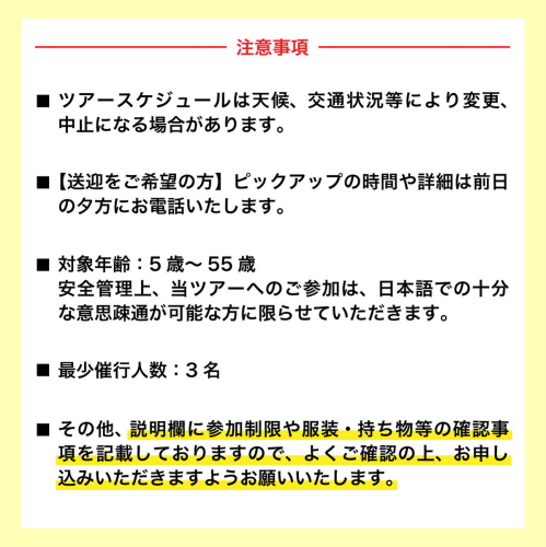 ・複数名で同じツアーに参加される場合、お子様を含む同行者全員分をお申し込みください。