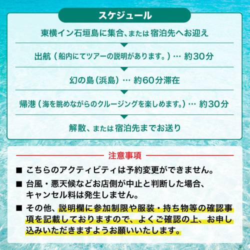 - 送迎無料!幻の島上陸ツアー 泳がなくても参加OK!0歳~初心者&1名参加可 <当日12時まで予約可/竹富島フリー観光格安券有/石垣島>【 旅行 体験チケット観光 大自然 体験ツアー 観光 沖縄 アクティビティ】