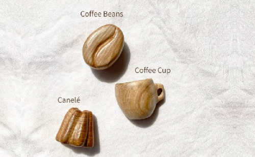 ”ほっと一息つくコーヒータイム”をテーマに、コーヒーカップ、コーヒー豆、カヌレをモチーフにしています。