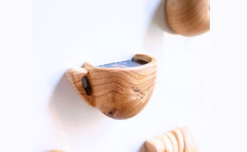 マキの木の丸太から削りだしたマグネットです。