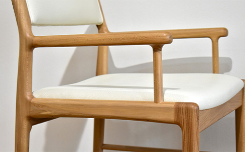 北海道産エルム材・ウレタン塗装仕上げ・布地・レザー