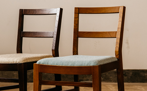 北海道産エルム材・ウレタン塗装仕上げ・布地・レザー