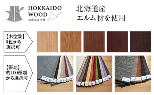 北海道産エルム材・ウレタン塗装仕上げ・布地・レザー