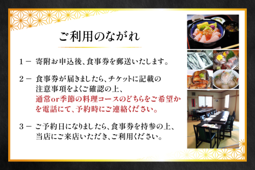 3.ご予約日になりましたら、食事券を持参の上、当店にご来店いただき、ご利用ください。