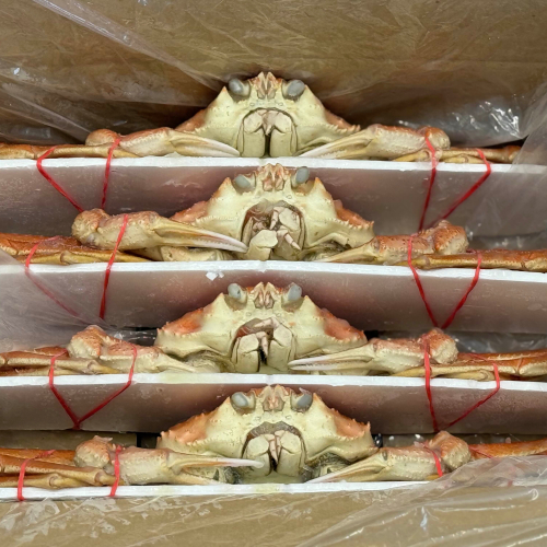 新鮮な活きたオオズワイガニを紋別市の本間水産でボイル加工後、急速冷凍しました。