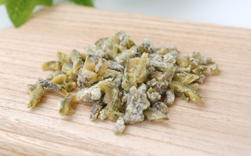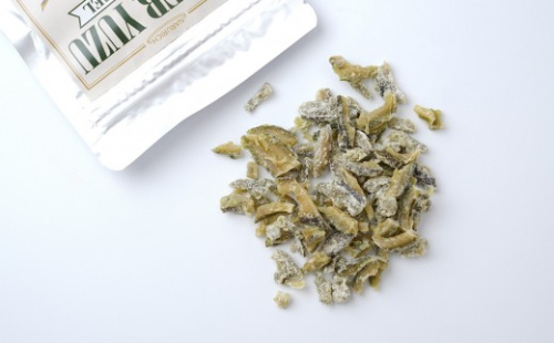 柑橘「じゃばら」が色付く前に収穫した青い果実の果皮を利用した、ビターでパンチの効いた味と香りが特徴です。