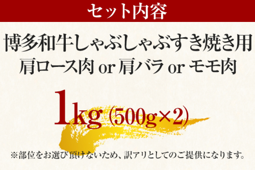 - 【先行予約】訳あり 博多和牛しゃぶしゃぶすき焼き用(肩ロース肉・肩バラ肉・モモ肉)1kg 黒毛和牛 お取り寄せグルメ お取り寄せ お土産 九州 福岡土産 取り寄せ グルメ MEAT PLUS CP006er