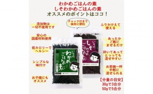 調味料(アミノ酸等)添加わかめご飯の素としそわかめご飯の素をセットにしました。