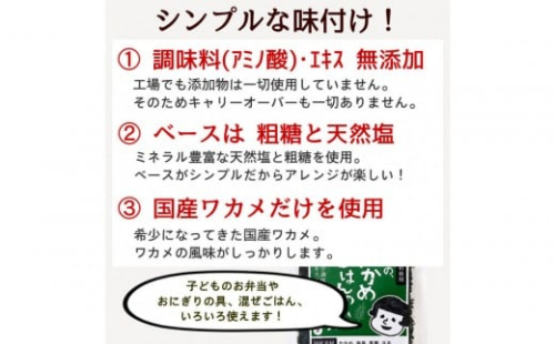 原材料:わかめ加工品(わかめ、粗糖、食塩*天然塩、昆布粉末)