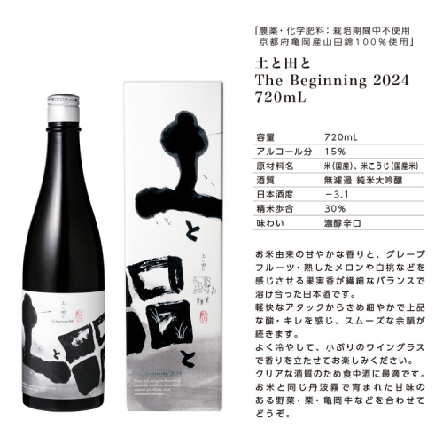 - 土と田と The Beginning 2024 720ml ≪無濾過純米大吟醸酒 日本酒 大吟醸 純米酒 お酒 京都 亀岡産 山田錦 酒 お取り寄せ ギフト≫