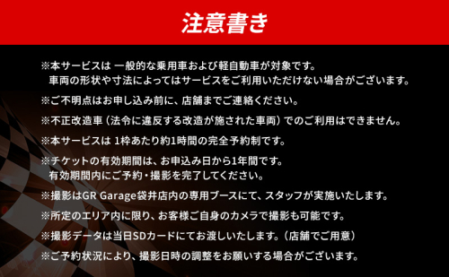 ※撮影はGR Garage袋井店内の専用ブースにて、スタッフが実施いたします。