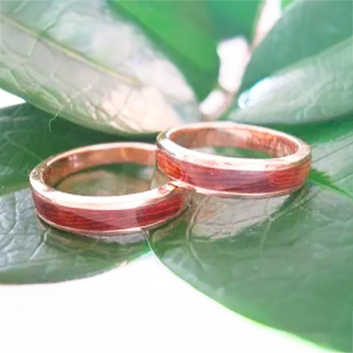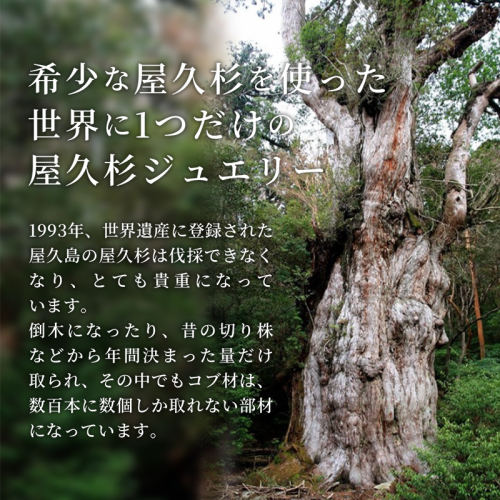 世界遺産の樹齢千年の屋久杉を使い、ピンクゴールドと組み合わせることにより生み出された屋久杉ジュエリー。