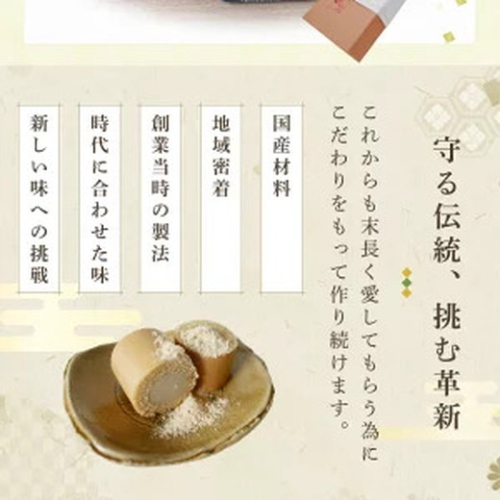 飴文老舗は、文久元年(1861年)に創業し、150年以上にわたり和菓子作りを続けてきた老舗菓子舗です。 創業以来守り抜いてきた伝統の製法と、厳選した素材へのこだわりを大切にしながら、一切の妥協なく確かな味を追求してきました。看板商品である「大砲巻」は、抹茶や栗、安納芋、柚子、さくらなど、四季折々に変わる餡を楽しめる人気の逸品。伝統を守るだけでなく、時代に合わせた新しい味への挑戦も惜しまず、真心を込めた菓子づくりで多くの人々に愛され続けています。