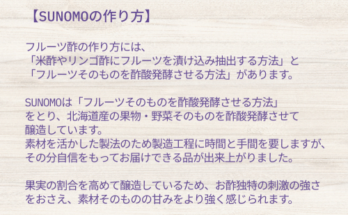 『SUNOMOナチュール』は、てんさい糖を加えず、添加物も使用していない原液タイプです。